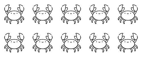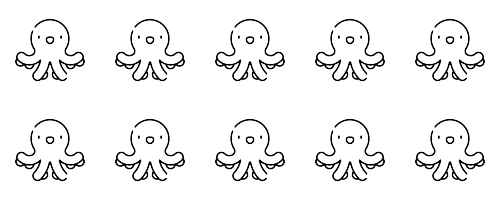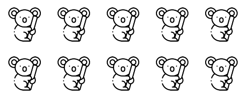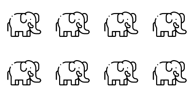 Observa las cantidades en la figura y compáralas con el número dado. Elige la relación correcta entre '=', '>', '<'