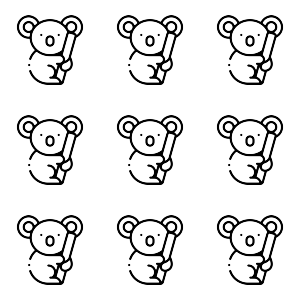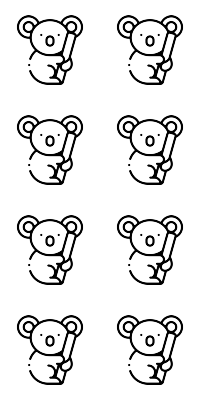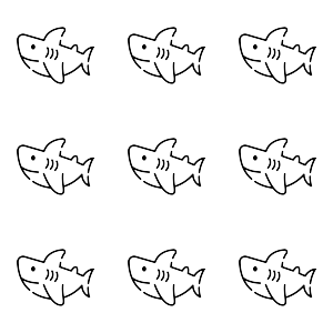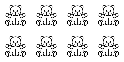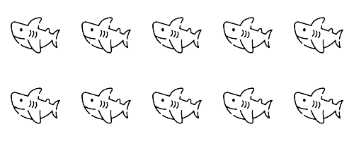 Observa las cantidades en la figura y compáralas con el número dado. Elige la relación correcta entre '=', '>', '<'